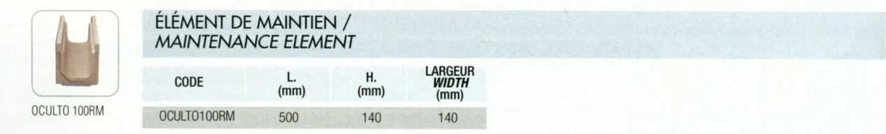 Channels to collect liquid material and comes in 500MM long and is mainly used for servicing the OCULTO 10. Grating for channel consists of one locking screws.